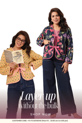 Jaipur Morni offers a thoughtfully curated assortment of pure cotton clothing that represents the richness of hand-block printing. Every piece reflects handmade craftsmanship as you stay comfortable and versatile. Our collection includes kurta sets for women, breezy co-ord sets, playful cotton jumpsuits, and soft women’s quilted jackets perfect for layering. Add cosiness to your downtime with quilted robes for women, and discover what block printing is through our designs that carry forward Rajasthan’s artisanal traditions.