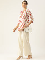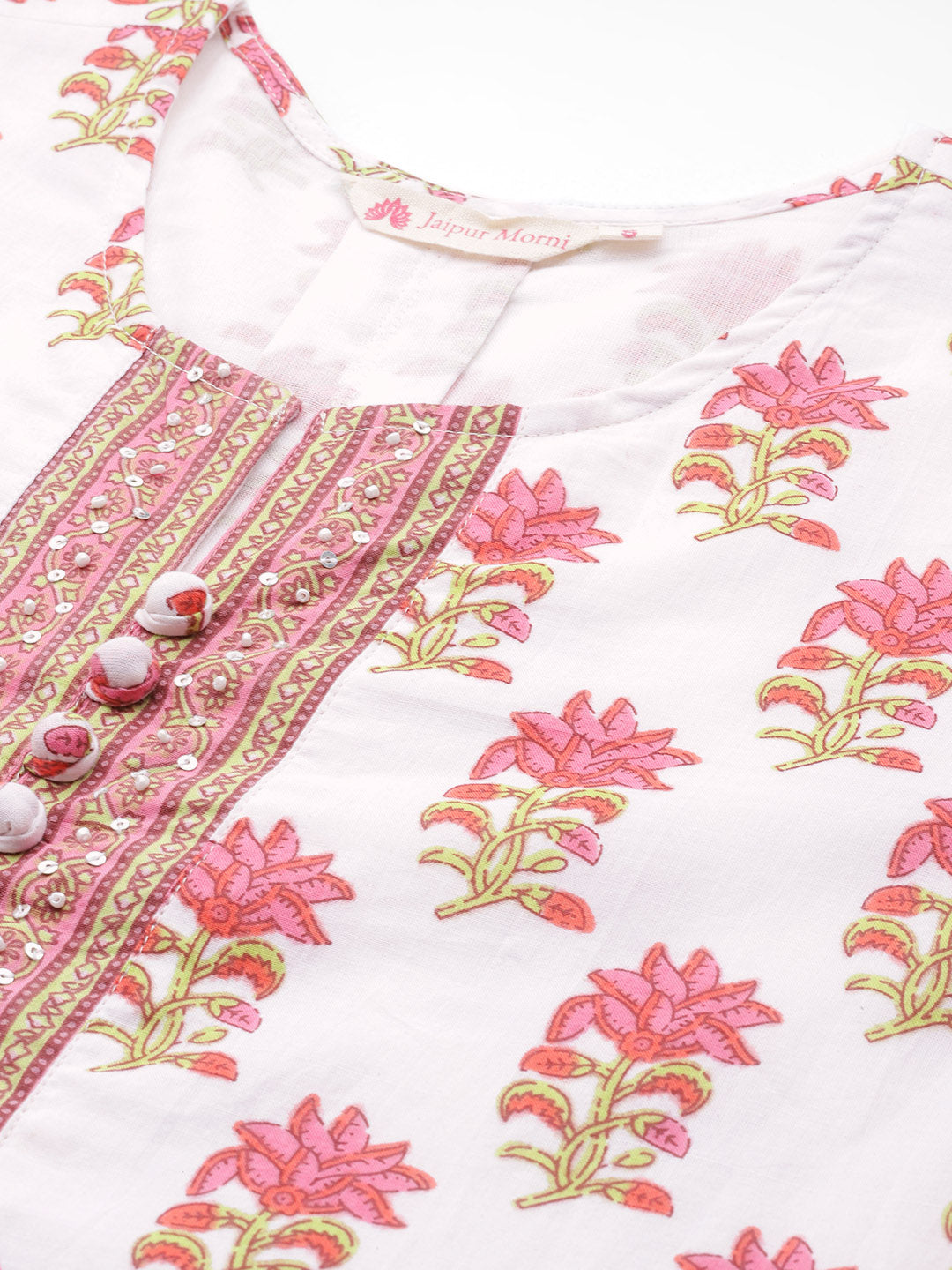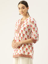 Home / Products / White Printed Sequinned Pure Cotton Kurti