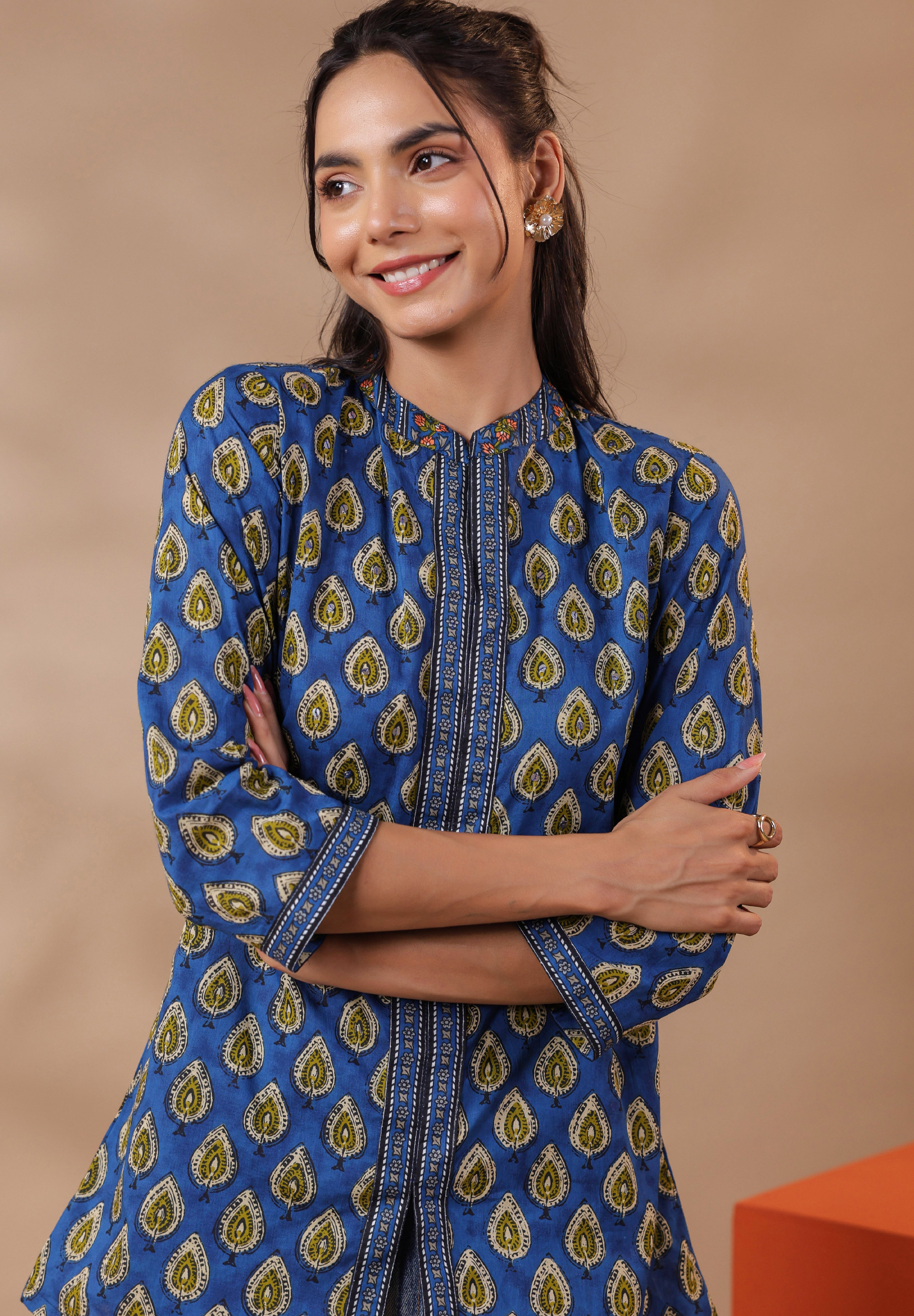Chic and versatile, this blue topper features subtle sequin embellishments that add just the right amount of sparkle. Its relaxed fit and flattering length make it a stylish go-to for any day.