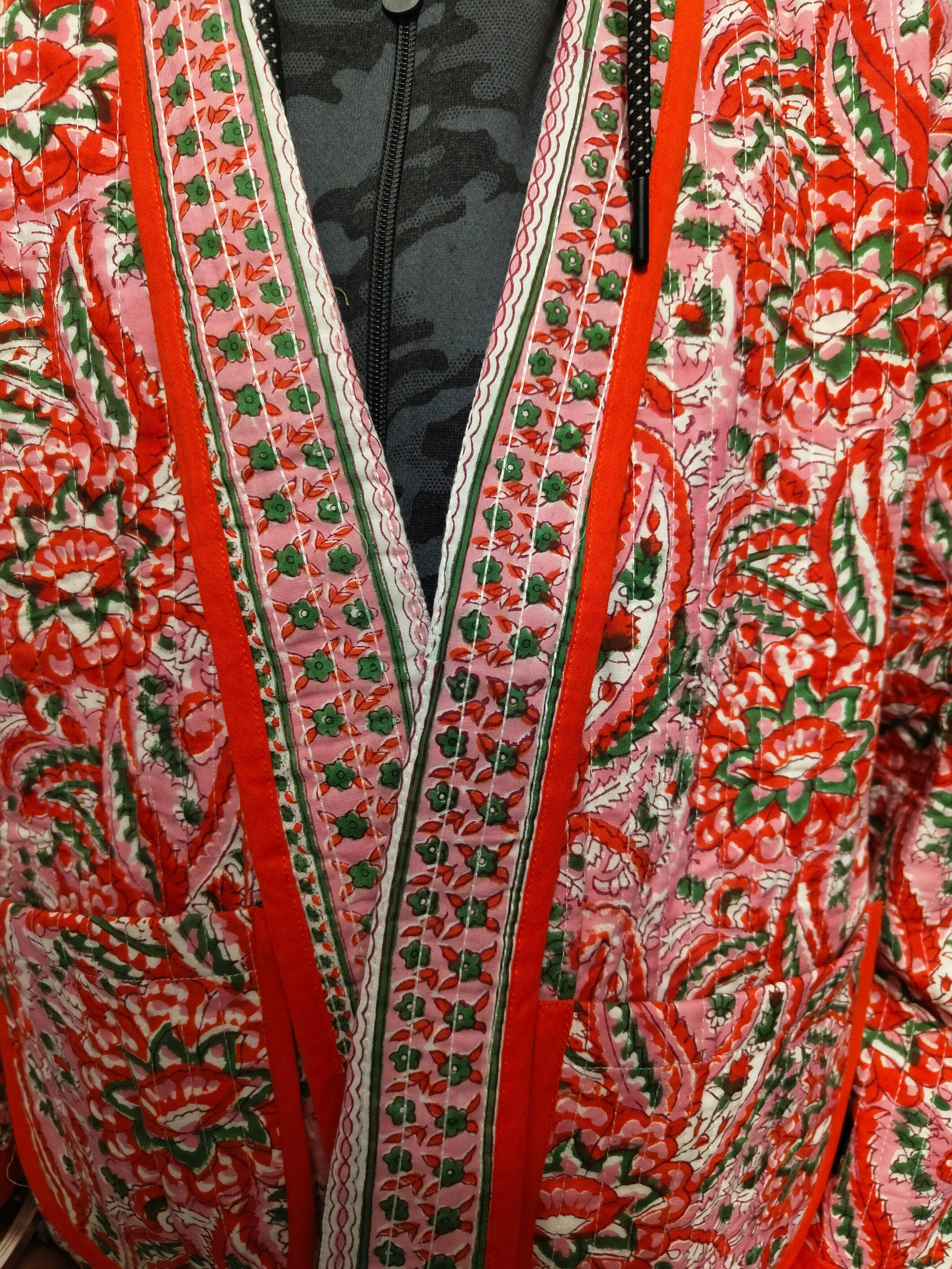 A versatile handblock printed reversible quilted jacket designed for effortless style and comfort. Free-size, cozy, and perfect for layering—giving you two chic looks in one.