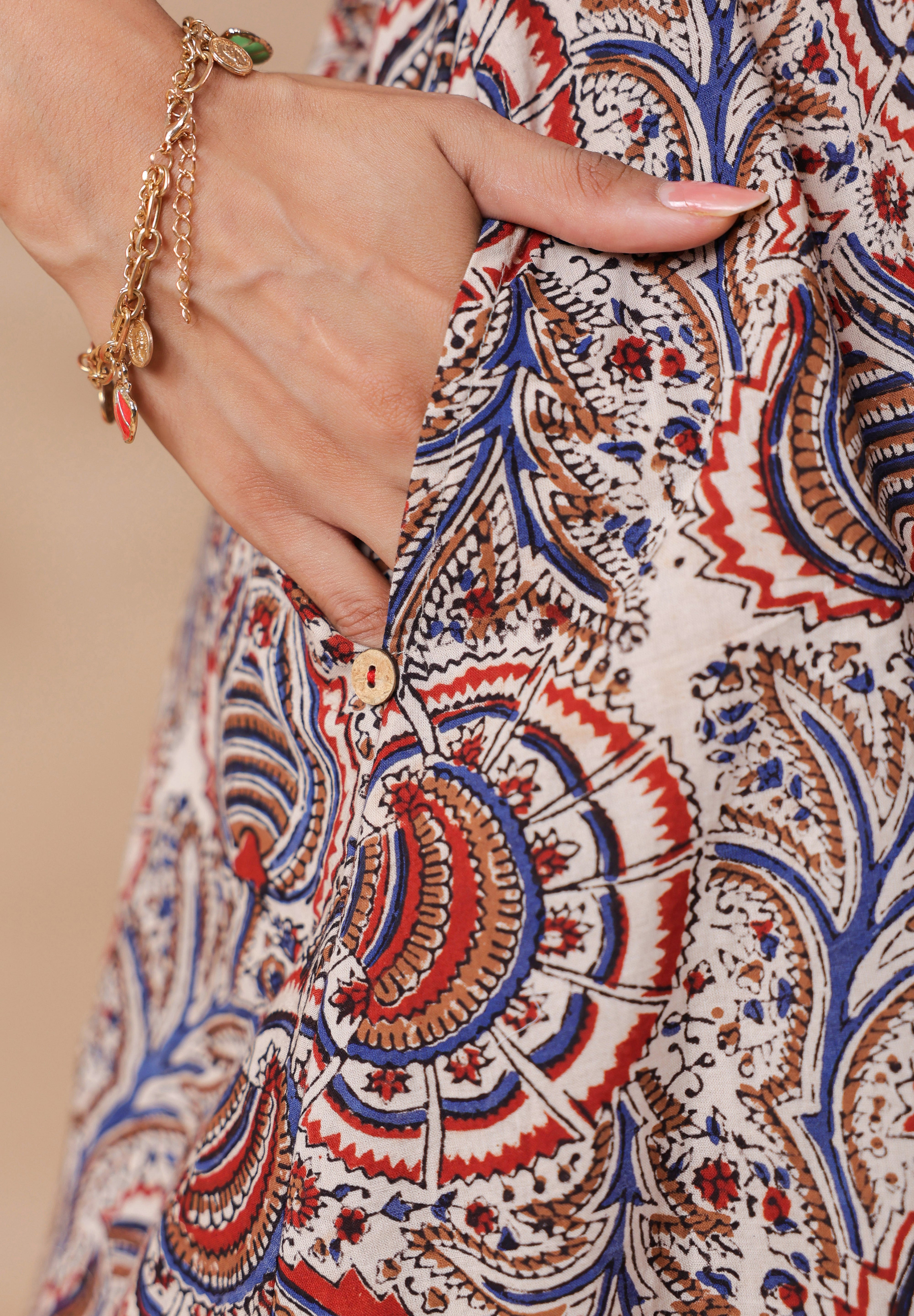 Please note: This garment is hand block printed, so slight irregularities and variations in the print are natural and part of its unique charm. These are not defects, but a hallmark of handcrafted techniques.