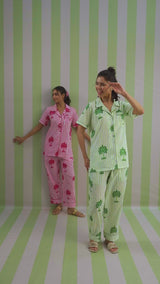 Green Palm Printed Lounge Set (Half Sleeve Shirt & Pyjama)