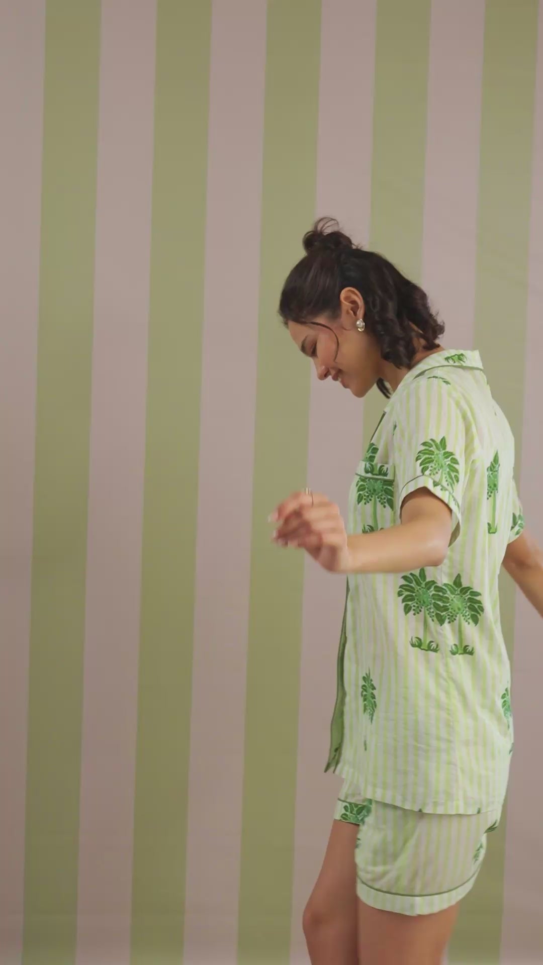 Green Palm Printed Short Lounge Set