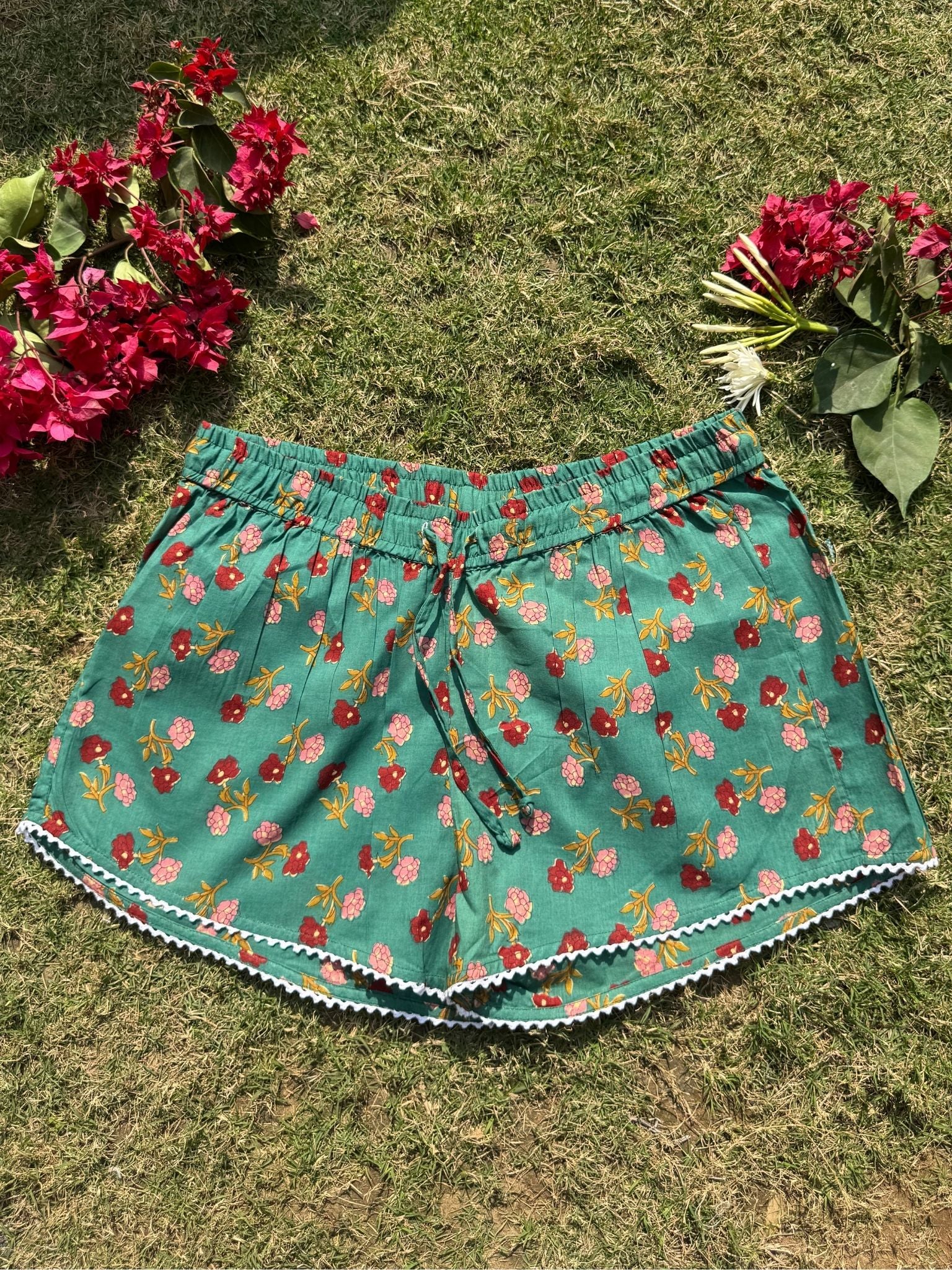 Green Printed Cotton Shorts