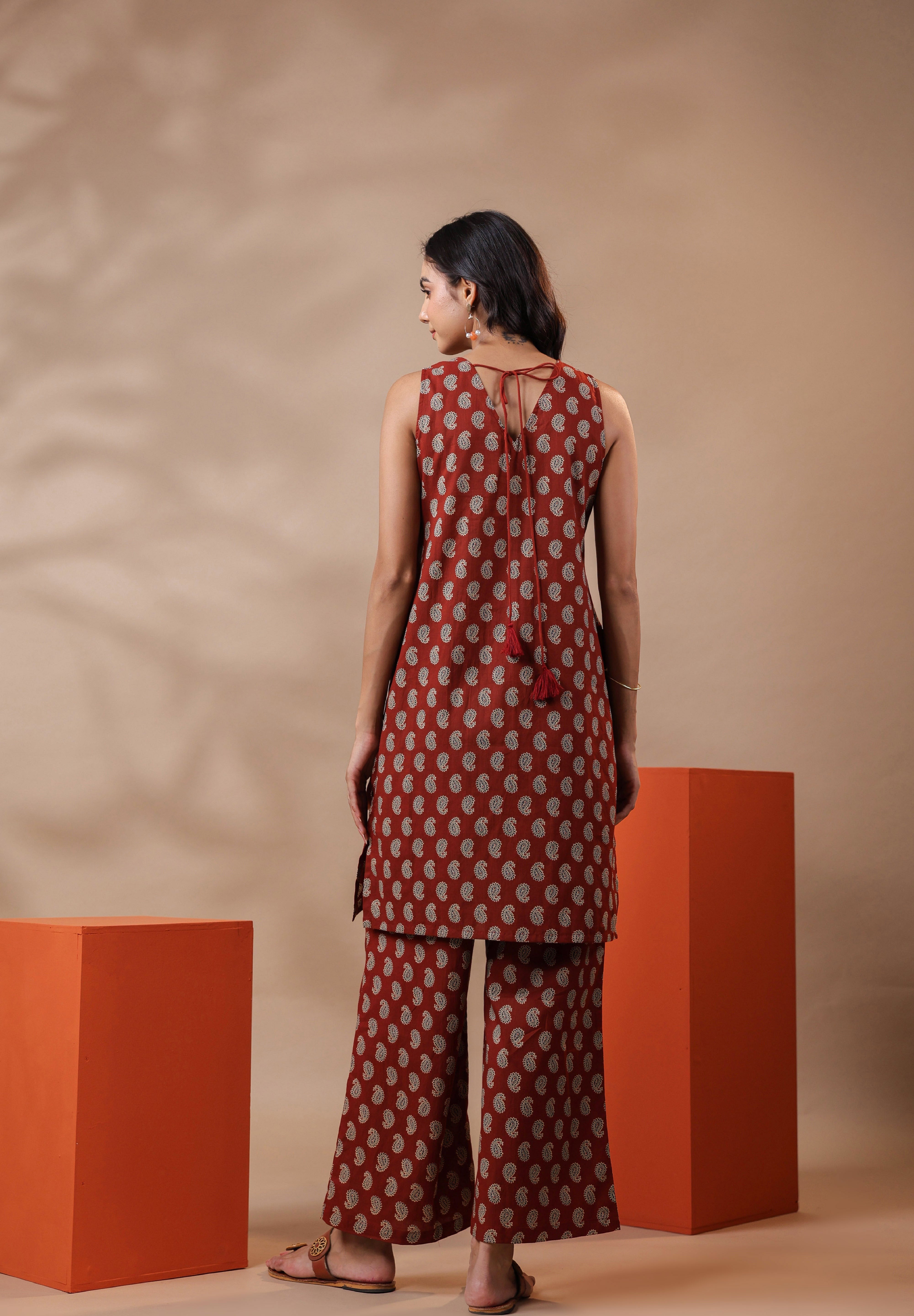Maroon Printed Cotton Kurta & Pants Set