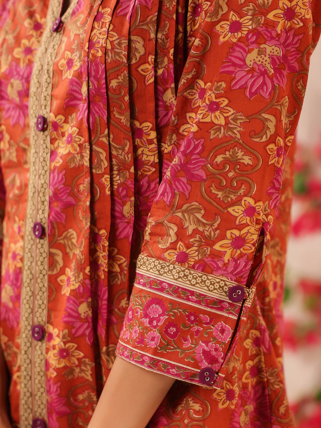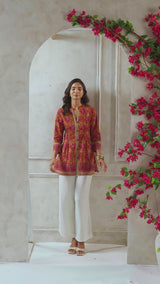 A versatile rust-orange printed cotton Pintex top that blends elegance with comfort. Made from two beautifully coordinated prints, it's a breathable and chic choice for everyday wear.