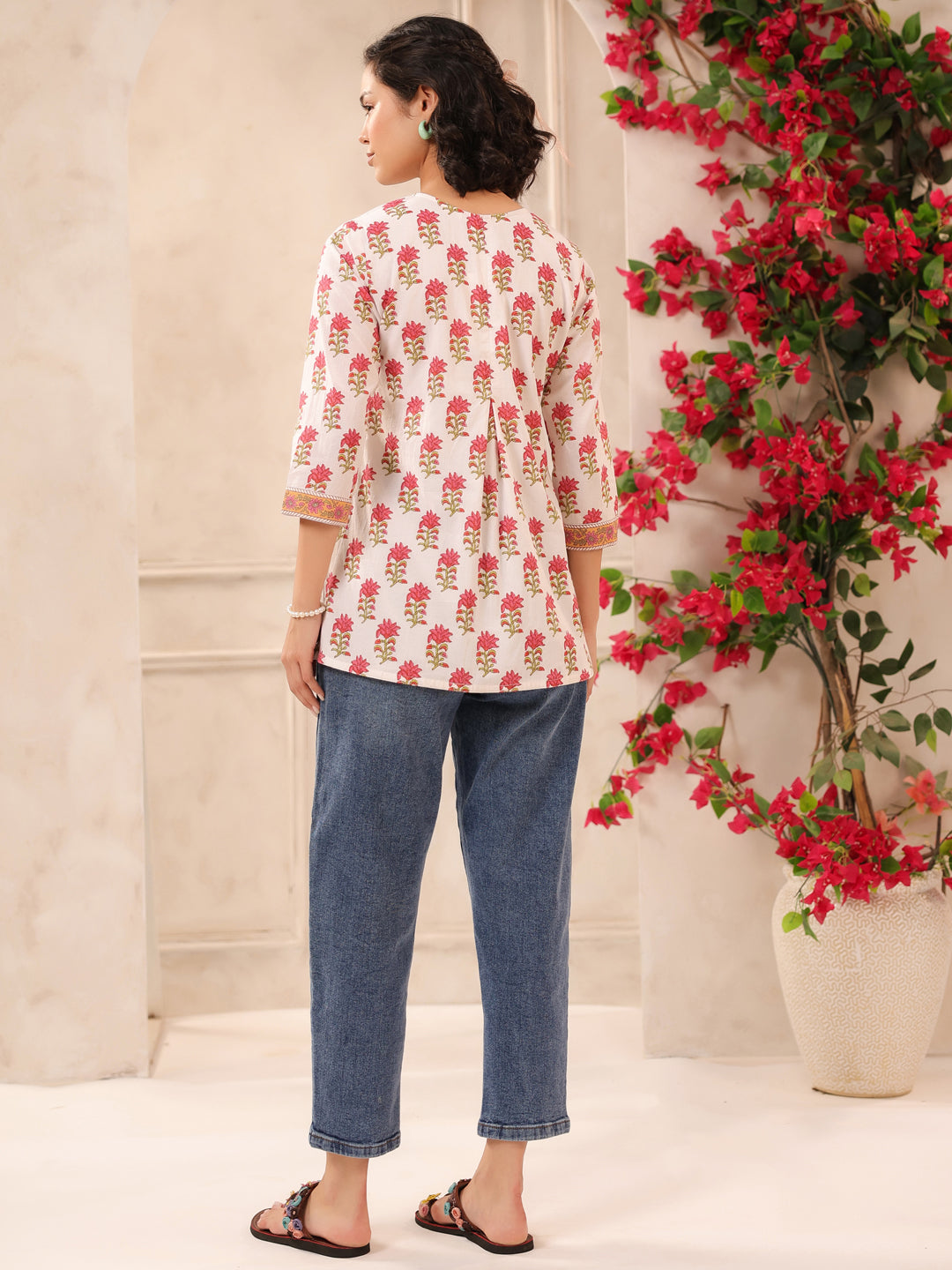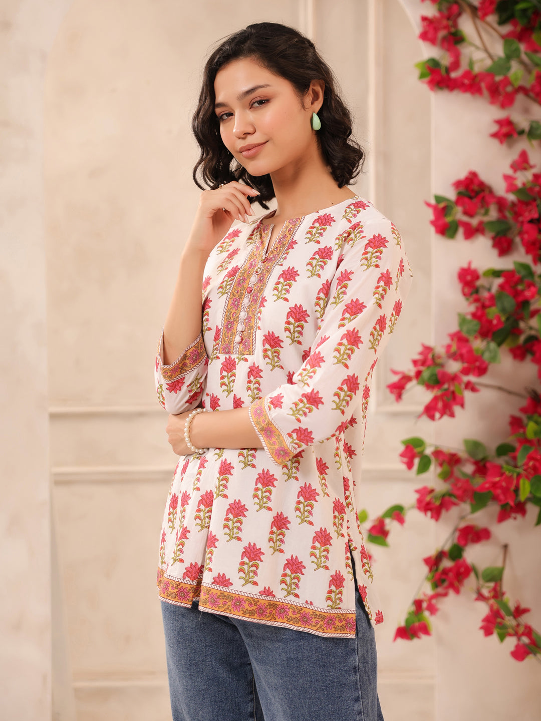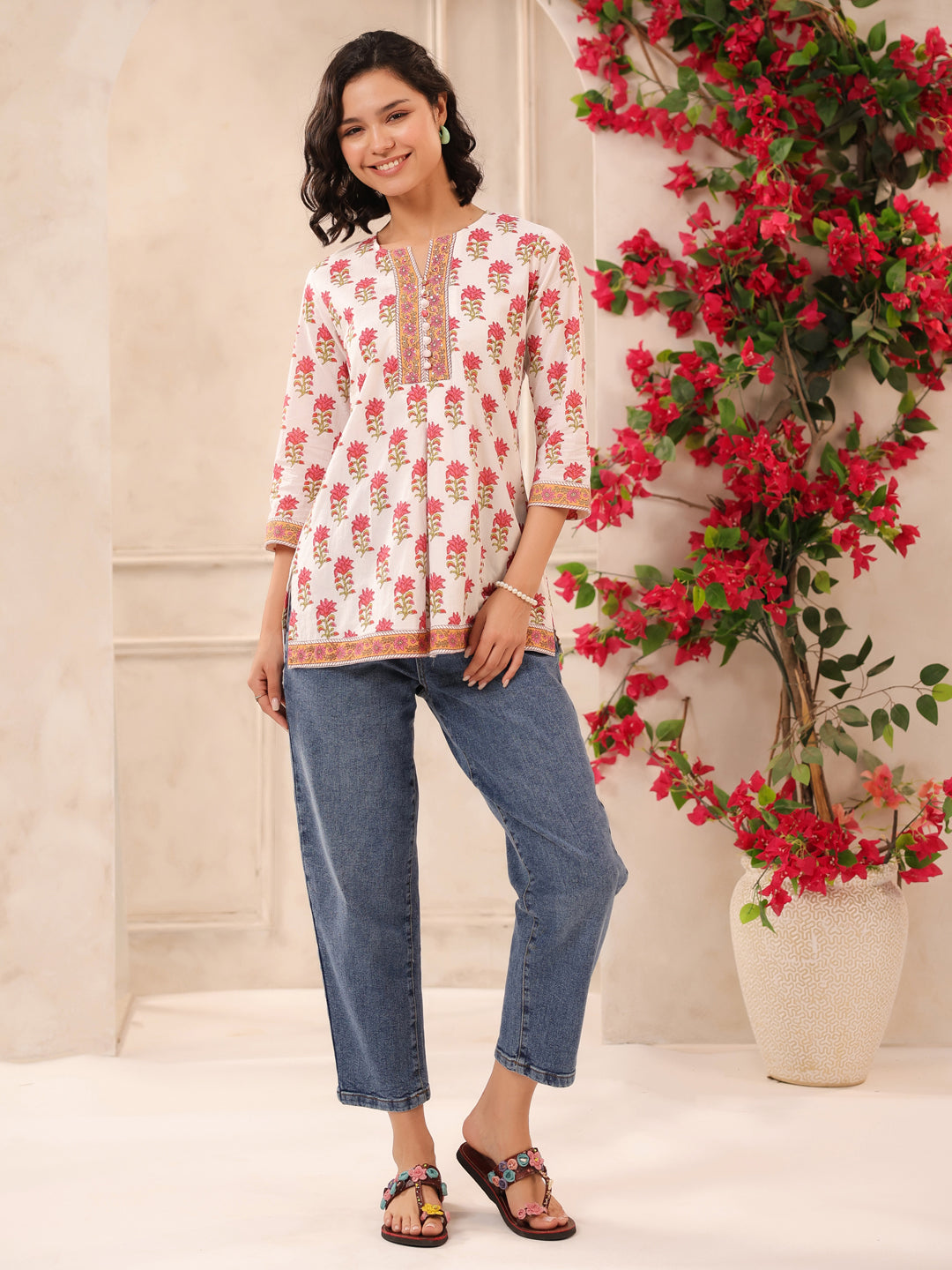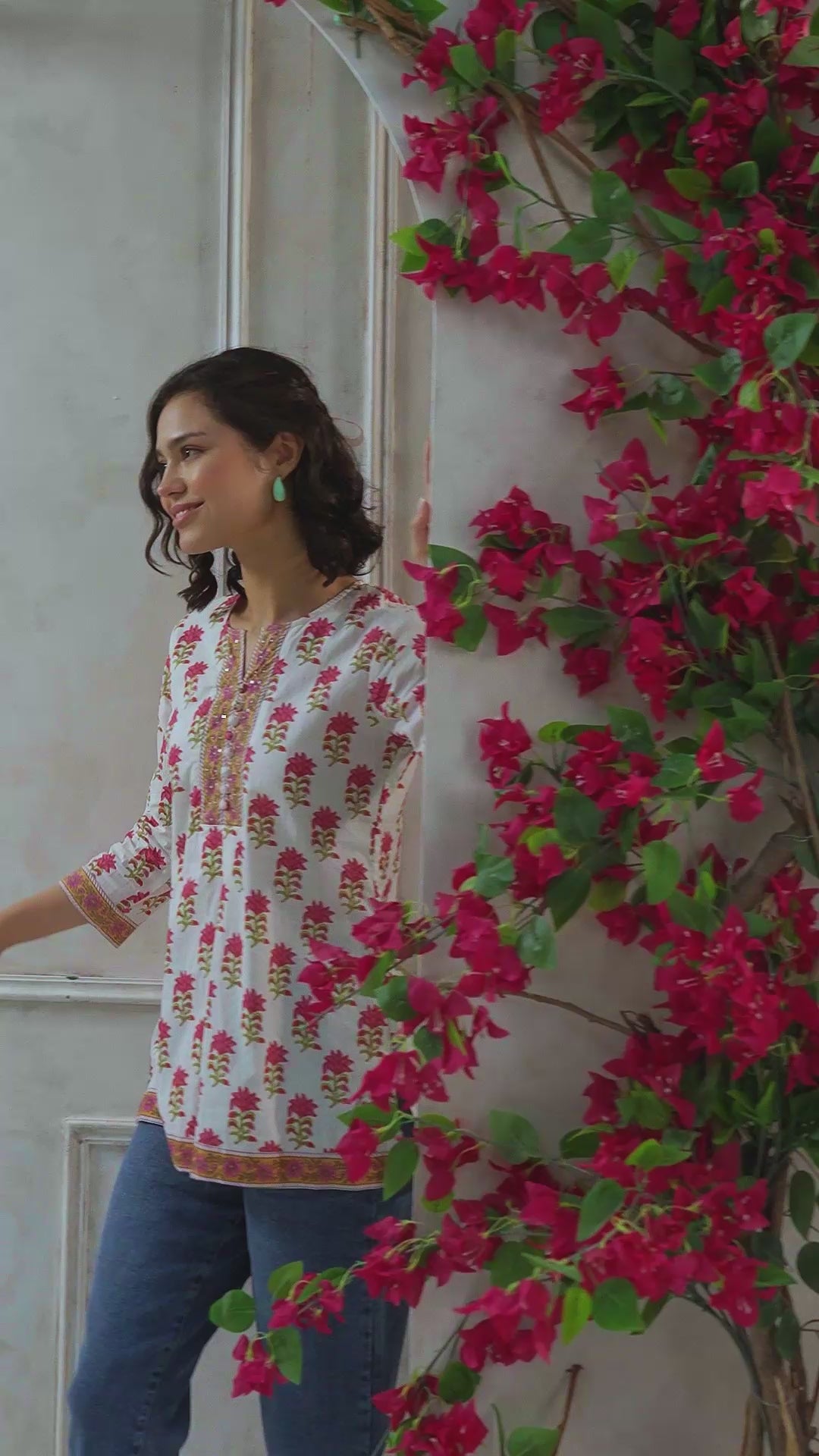 A graceful white top adorned with delicate ethnic motifs and subtle embellishments — the perfect blend of elegance and everyday ease. Fully lined for comfort, it’s an elevated staple for festive or semi-formal occasions.